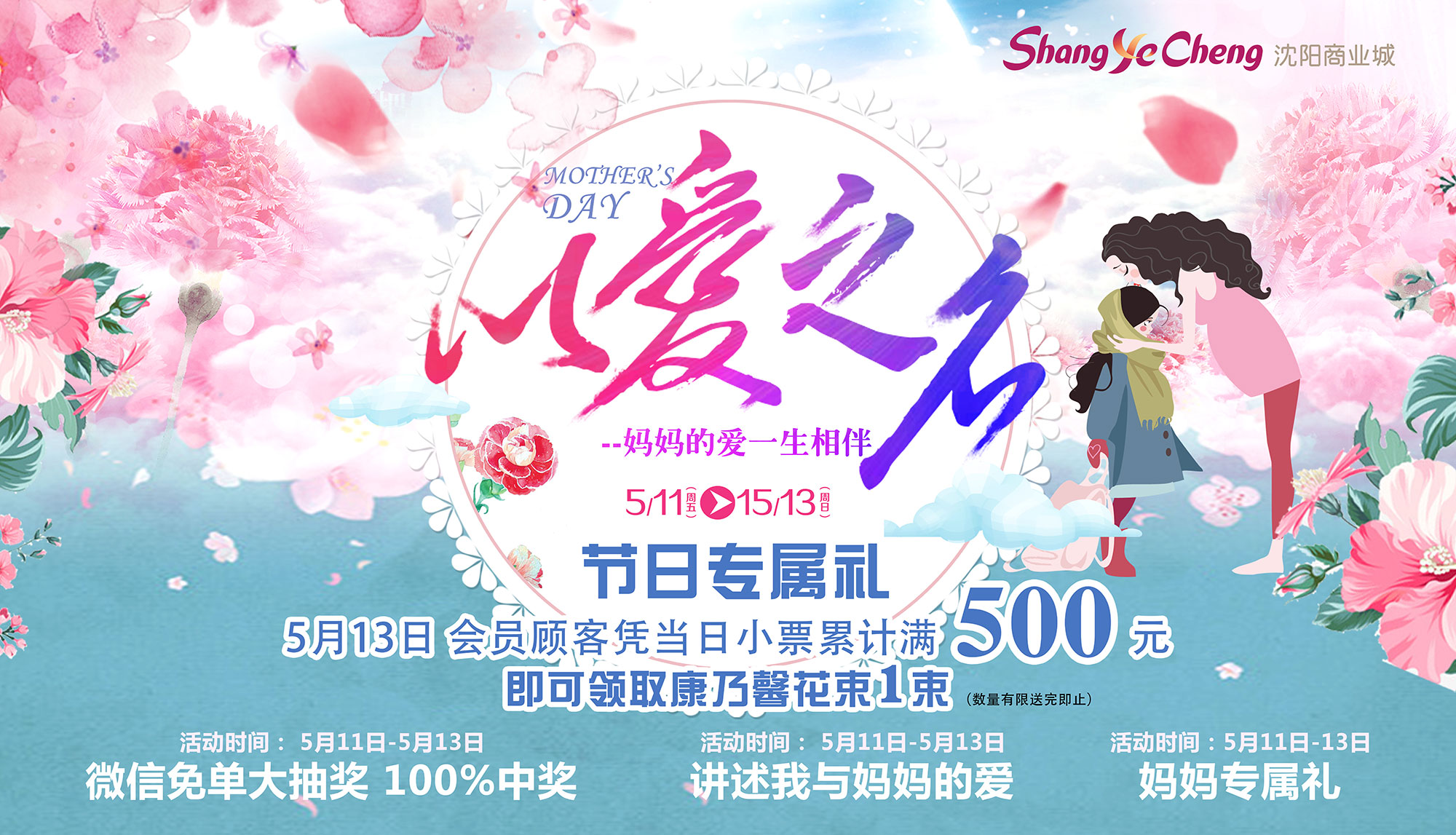 5月13日,會(huì)員顧客憑當(dāng)日小票累計(jì)滿(mǎn)500元,即可領(lǐng)取康乃馨花束1束(數(shù)量有限送完為止)